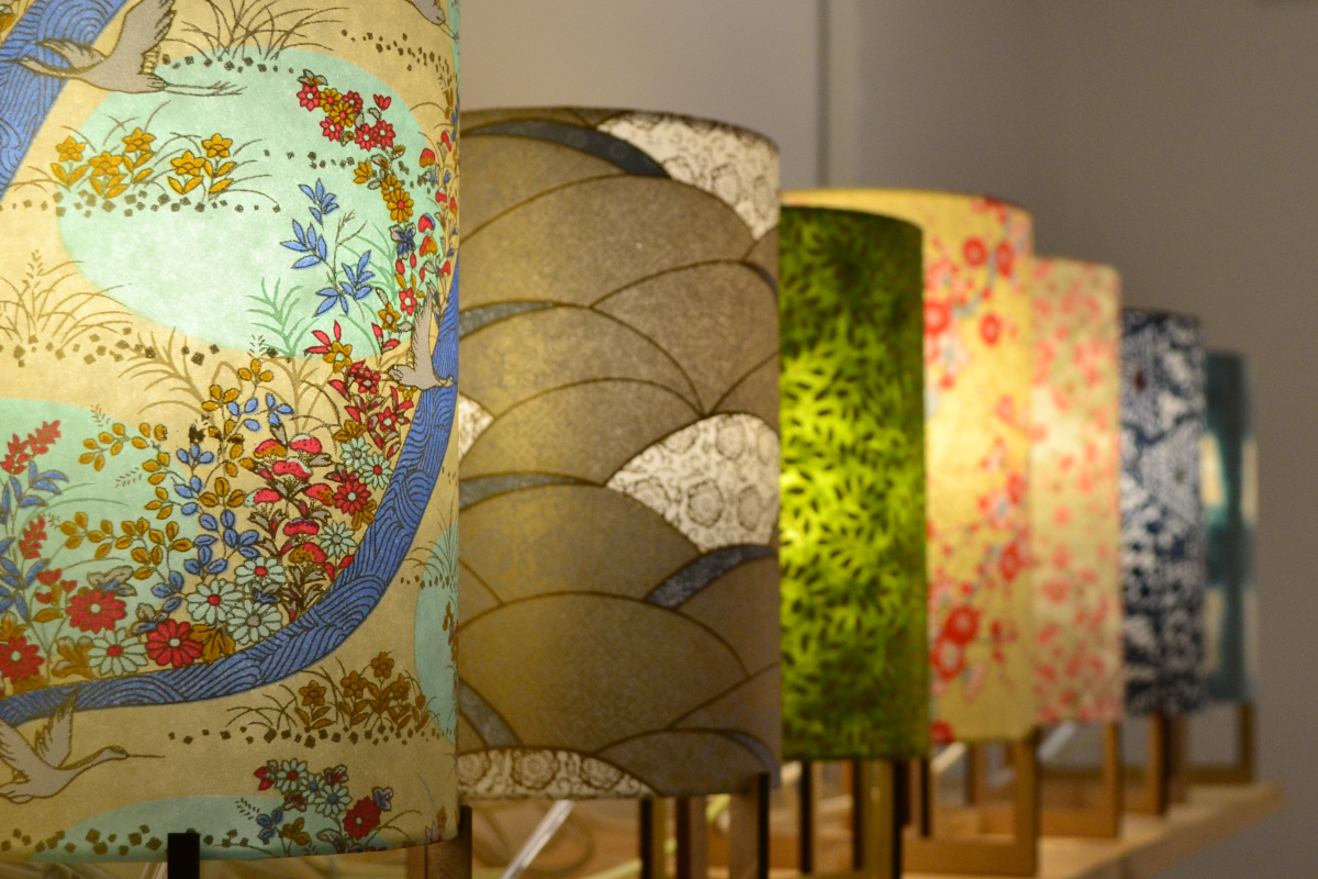 Pour les luminaires que je fabrique, j’ai fait le choix du papier. Pour la délicatesse des motifs, mais aussi pour la qualité de l’éclairage. À motif et coloris comparables, un abat-jour en textile laissera bien moins passer la lumière. Cela permet d’utiliser une puissance d’ampoule plus basse, et de jouer plus librement avec les formes et les motifs.
